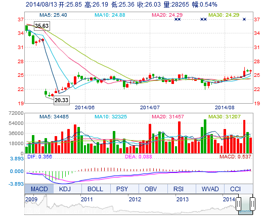 | 最 低: | 25.36 | 總市值: | 169.71億 | 市凈率: | 6.47 |