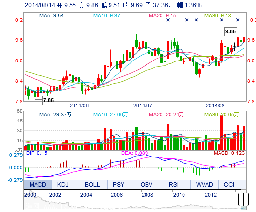| 最 高: | 9.86 | 成交額: | 3.63億元 | 換手率: | 4.19% |