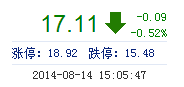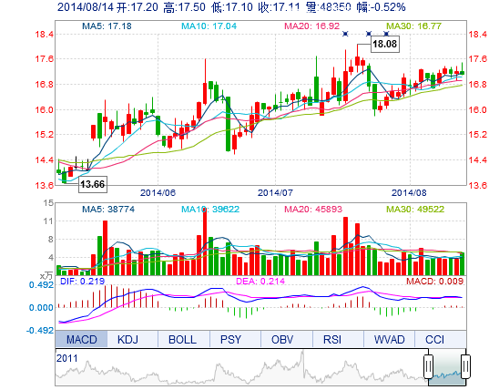 | 今 開: | 17.20 | 成交量: | 4.83萬手 | 振 幅: | 2.33% |
