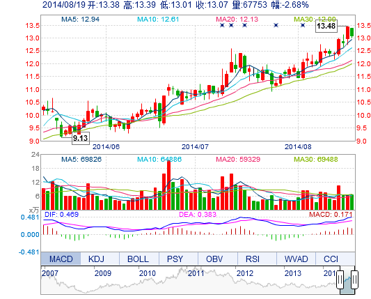 | 最 低: | 13.01 | 總市值: | 26.04億 | 市凈率: | 5.25 |