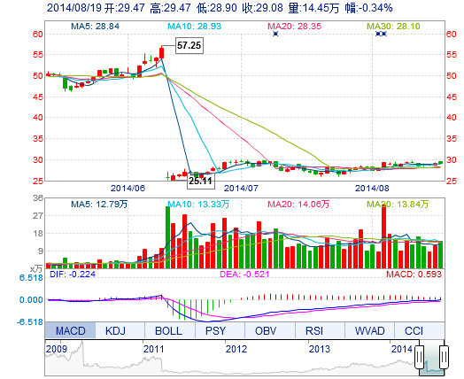 | 今 開: | 29.47 | 成交量: | 14.45萬(wàn)手 | 振 幅: | 1.95% |