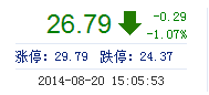 今開: 27.10 成交量: 3.29萬手 振幅: 1.92% 最高: 27.12 成交額: 8824.01萬元 換手率: 0.63% 最低: 26.60 總市值: 175.06億 市凈率: 9.63 昨收: 27.08 流通市...