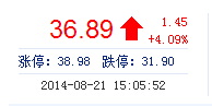 | 最 低: | 34.50 | 總市值: | 25.82億 | 市凈率: | 8.79 |