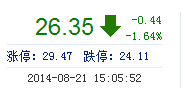 | 最 高: | 26.85 | 成交額: | 1.01億元 | 換手率: | 0.74% |