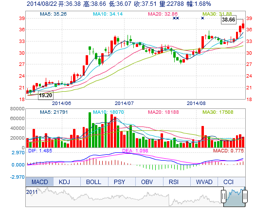 | 今 開: | 36.38 | 成交量: | 2.28萬手 | 振 幅: | 7.02% |