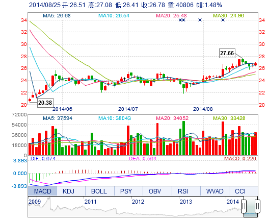 | 最 低: | 26.41 | 總市值: | 175.00億 | 市凈率: | 9.62 |
