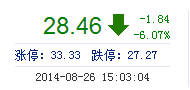 今開: 30.08 成交量: 4.45萬手 振幅: 7.19% 最高: 30.28 成交額: 1.29億元 換手率: 2.56% 最低: 28.10 總市值: 71.54億 市凈率: 14.18 昨收: 30.30 流通市值...