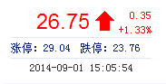 | 今 開: | 26.27 | 成交量: | 2.94萬手 | 振 幅: | 2.12% |