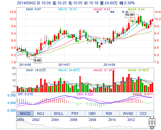 今開(kāi): 10.09 成交量: 24.80萬(wàn)手 振幅: 1.97% 最高: 10.25 成交額: 2.52億元 換手率: 2.78% 最低: 10.05 總市值: 90.72億 市凈率: 3.36 昨收: 10.14 流通市值...