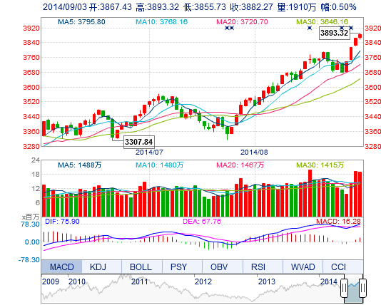 | 今 開: | 3867.43 | 最 高: | 3893.33 |