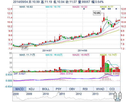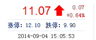 | 今 開: | 10.99 | 成交量: | 9.91萬手 | 振 幅: | 2.27% |