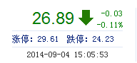 | 今 開: | 26.81 | 成交量: | 3.63萬手 | 振 幅: | 0.97% |
