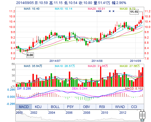 | 最 高: | 11.15 | 成交額: | 5.59億元 | 換手率: | 5.77% |