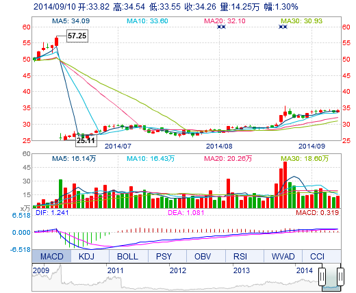 | 最 低: | 33.55 | 總市值: | 224.35億 | 市凈率: | 13.20 |