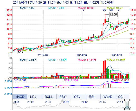| 今 開: | 11.30 | 成交量: | 14.62萬手 | 振 幅: | 4.55% |