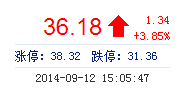 今開: 34.74 成交量: 21.30萬手 振幅: 4.65% 最高: 36.25 成交額: 7.55億元 換手率: 3.36% 最低: 34.63 總市值: 236.93億 市凈率: 13.94 昨收: 34.84 流通市...