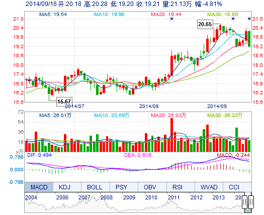 | 最 低: | 19.20 | 總市值: | 202.81億 | 市凈率: | 5.51 |
