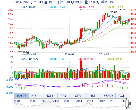 今開: 19.41 成交量: 17.89萬手 振幅: 2.63% 最高: 19.89 成交額: 3.53億元 換手率: 1.87% 最低: 19.38 總市值: 208.94億 市凈率: 5.67 昨收: 19.40 流通市值...