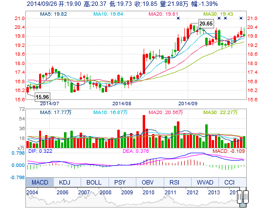 今開: 19.90 成交量: 21.98萬手 振幅: 3.18% 最高: 20.37 成交額: 4.40億元 換手率: 2.30% 最低: 19.73 總市值: 209.57億 市凈率: 5.69 昨收: 20.13 流通市值...