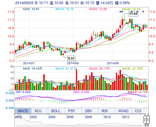 今開: 10.71 成交量: 14.04萬手 振幅: 2.24% 最高: 10.85 成交額: 1.51億元 換手率: 1.58% 最低: 10.61 總市值: 95.53億 市凈率: 3.53 昨收: 10.71 流通市值...