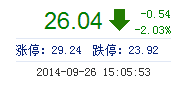 | 最 高: | 26.60 | 成交額: | 1.33億元 | 換手率: | 0.97% |