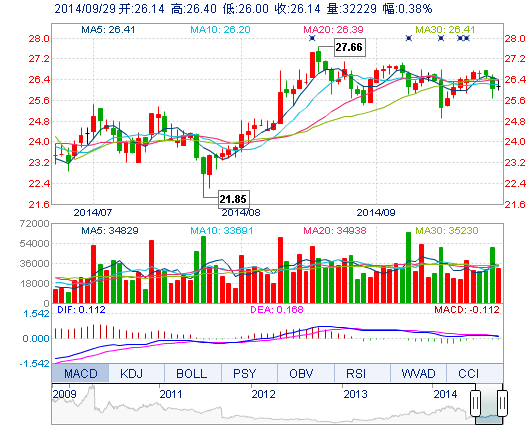 | 今 開: | 26.14 | 成交量: | 3.22萬手 | 振 幅: | 1.54% |