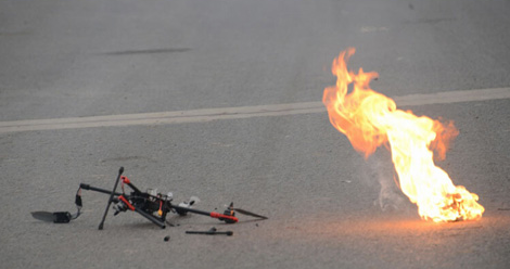 另據德國《明鏡》周刊網站11月3日報道,有些科學家從兒時起就夢想造出激光武器,但這沒有科幻小說中那么容易——尤其是因為激光能耗巨大。盡管如此,激光武器已不再是幻想。2009年,波音公司曾展示一輛安裝了激光炮的吉普車,這門激光炮擊落了數架無人機。現在,中國的物理學家顯然也研發出一套類似系統。新華社報道,這種激光武器可在5秒內擊落小型無人機。新華社展示了涂有迷彩的大金屬箱和地面上破損的無人機的圖片。中國工程物理研究院的工作人員說,小型無人機比較便宜,操作簡單,因此可能為恐怖分子所利用。波音在推出其防御無人機的激光炮時也提出了類似說法。過去幾天法國核電站上空出現神秘飛行器一事表明,這種情形絕對可能出現。