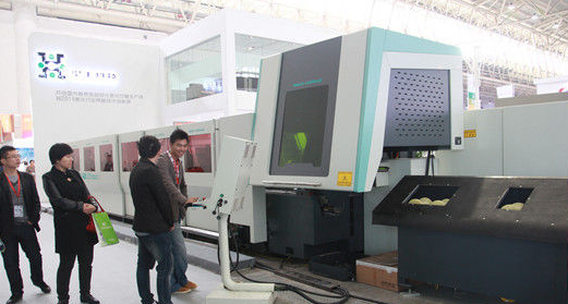 華工科技展出由該公司自主研制的國內首套高速全自動激光切管機高速﹑高精加工異形管設備。與傳統設備相比,可以節約90%的人工,生產效率提升兩倍。
