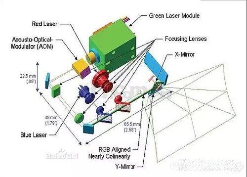 回到正題上,什么是RGB雷射激光技術呢?這個名詞聽起來很神奇,但是事實卻并非如此。激光投影是使用具有較高功率(瓦級)的紅、綠、藍(三基色)單色激光器為光源,混合成全彩色,當掃描速度高于所成像的臨界閃爍頻率,就可以滿足人眼“視覺殘留”的要求,人眼就可清晰觀察。與現有的抬頭顯示器應用的顯示技術相比,激光技術所顯示出來的數據會更加的清晰,即使在光線比較強的夏天中午也還是可以看清楚,除此之外,能夠顯示的數據信息會比現在在主板上焊接LED等來顯示數據的方式更加靈活。