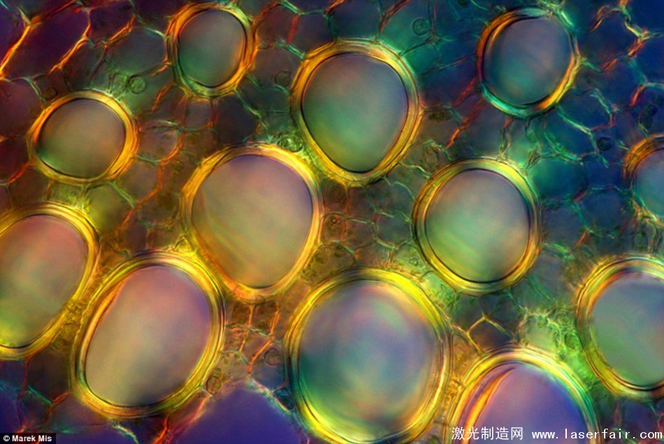 歐當歸草(levisticum)的顯微鏡下圖像。拍攝時使用了偏振光,以便展示植物結構的一些細節?! ?/p>