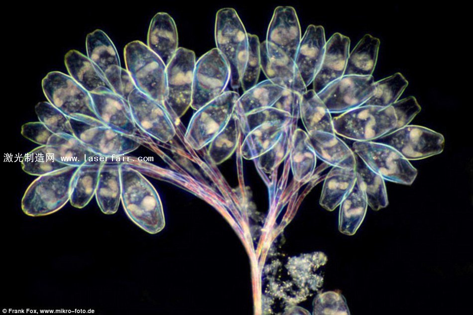 原生動物是原始的單細胞生物,但它們在維持與平衡微生物生態系統的過程中發揮著至關重要的作用。這張照片中展示的是一種名為“鐘形蟲”的原生生物。拍攝者使用了一種被稱作“暗視野鏡檢”的方法,從而可以拍攝到被照亮的清晰生物體。