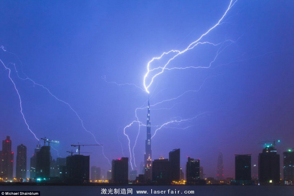 在本次展覽中還有城市上空發生的閃電場景,比如這張照片,拍攝的地點是在迪拜的哈利法塔?! ?/p>