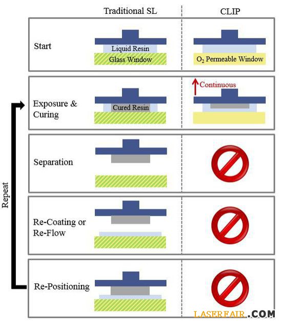 傳統光固化技術與CLIP的差距就在于停頓和重啟的過程而CLIP是連續打印的