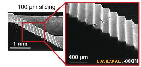 SLA技術規避的辦法是,降低聚合樹脂的速度,在樹脂完全固化之前停止照射并下降樹脂池,使液體樹脂重新充滿縫隙,打印平臺上升一點,重復這個過程。