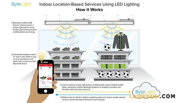 ByteLight首次進入大眾視野是在2012年獲得來自風險投資公司的融資125萬美元。2014年6月在美國國際照明展上,GE照明宣布與ByteLight聯(lián)手打造新一代LED照明系統(tǒng),令零售商能為進店顧客輕松提供定位連線服務(wù),合作伙伴就是沃爾瑪。這一利用可見光源信號和低耗能藍牙技術(shù)對顧客的智能設(shè)備進行連接的室內(nèi)定位解決方案。其實,同是在去年的LFI展會上, Acuity Brands計劃與高通展開這方面的合作,也和高通聯(lián)合開發(fā)了自己的室內(nèi)定位服務(wù)系統(tǒng)。不過 Acuity Brands表示,將整合這些技術(shù)系統(tǒng)。