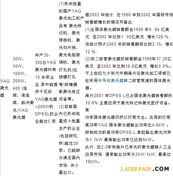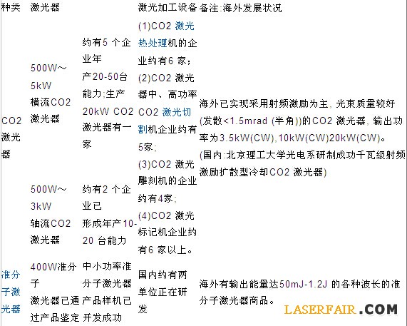 表4國內(nèi)激光器和激光加工設(shè)備發(fā)展概況
