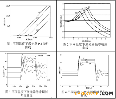 2 )溫度越高激光器的調制帶寬越小,調制的中心頻率越低,同時輸出光功率也就更低;