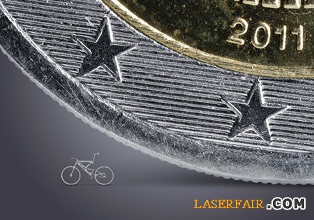 圖1 超短脈沖激光器制作的微自行車與站立的歐元硬幣大小的比較