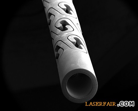 心血管支架的制造是一個明確證明,激光加工過程是從一個擠壓金屬管子切割出錯綜復雜的格子花紋。格子花紋可以支撐10μm寬度設計,通常包含了許多急彎處和柔性鉸鏈。常規激光加工會產生熱影響區(HAZ)和重塑金屬,后處理前必須完成最后拋光和支架的裝配。手動去毛刺和化學腐蝕是消除缺陷的常見方法,而這些需要為熟練工人和材料增加成本。