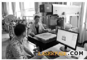 圖為學(xué)生用激光打標(biāo)機(jī)在雕刻家紡產(chǎn)品。 在布料上做花型,大家熟知的有印花、提花、繡花等方式,可是,現(xiàn)在浙江紡織服裝職