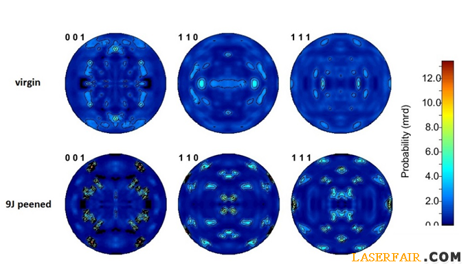 圖3. TiAl合金激光沖擊強(qiáng)化前后織構(gòu)的變化