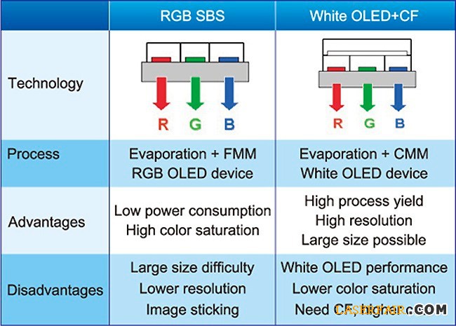 常見全彩OLED技術比較表