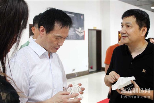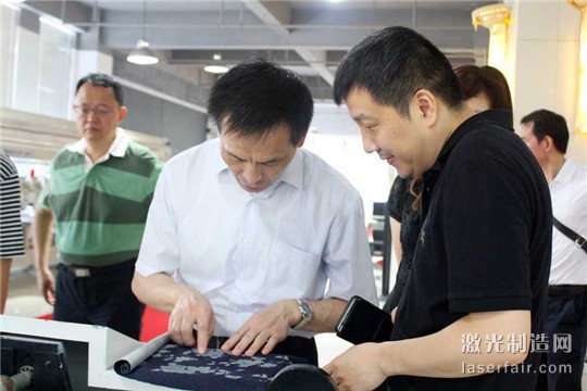 隨后,胡書記還饒有興趣地參觀了金運3D打印互動墻、意造出品的各種3D打印產品、以及自主研發的桌面級3D打印機,并對公司在3D打印業務開展以來所取得的成績和行業領導地位表示贊賞。此外,還參觀了公司的激光智能加工設備,在一款面料雕花機面前,胡書記停下腳步,仔細詢問它是怎樣將惟妙惟肖花紋“印”到面料上,市場銷量如何,產能多大、有無污染,當得知它是通過物理高溫氣化成型,個性化加工,毫無污染,,并且市場需求旺盛時,胡書記感嘆,在未來的定制化時代,這種類型的個性化環保型產品,必將取代傳統的高能耗高污染加工方式,個性化的激光加工還是大有可為的。