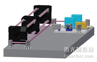 圖4:碳纖維CO2 激光器,在聲光調制器的前面(藍色)和后面(黃色)有兩個紅外照相機。