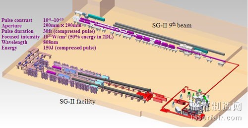 依托神光II裝置八路中的一束和神光II第九路激光,采用全OPCPA技術(shù)設(shè)計了數(shù)PW的超短脈沖激光實驗平臺。