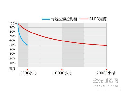 光峰光電新超短焦激光投影機由于采用ALPD激光光源,不但具備長達20000小時以上的壽命,在整個壽命期內的色彩飽和度和亮度的衰減幅度也很小,使用期間免去維護成本。