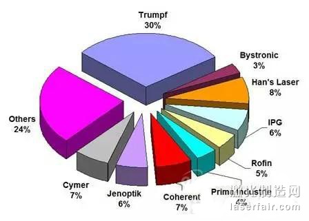 圖2:通快占據激光系統材料加工市場30%的銷售份額。
