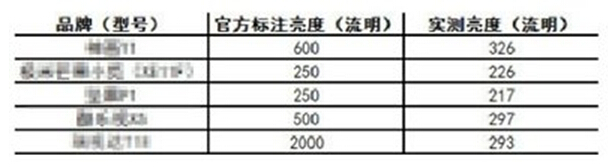 主流微投產品亮度對照表