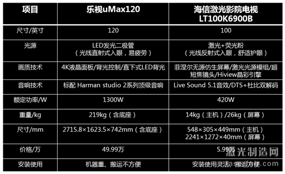 樂視120英寸液晶電視、海信100英寸激光影院電視,彩電市場已經正式向超大尺寸、家庭影院方向開戰。而液晶與激光顯示兩大技術的競爭也在彌漫著火藥味。