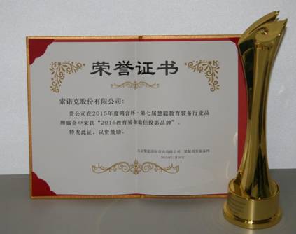 近日,慧聰教育裝備網主辦的第七屆慧聰教育裝備行業品牌盛會的頒獎盛典上,投影行業的Sonnoc(索諾克)高端工程投影機榮獲2015年度十大投影品牌獎。高端工程投影機市場多年來一直被國際知名品牌所壟斷,能榮獲該獎項,也恰恰是最能體現出Sonnoc(索諾克)品牌的含金量。